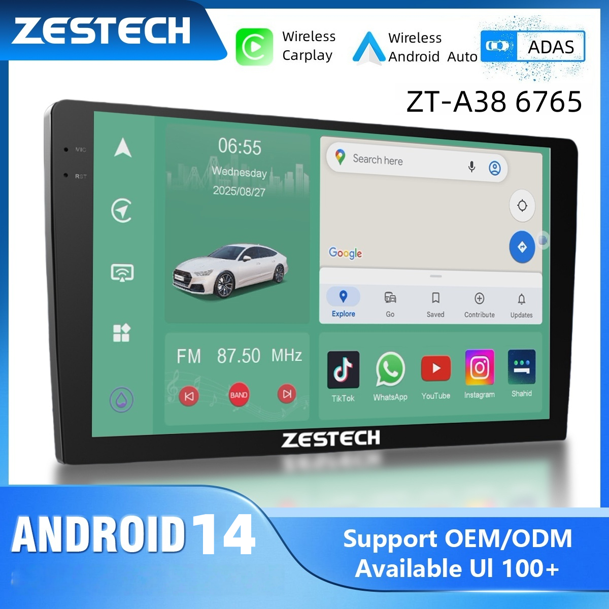 ZESTECH ZT-A38 MTK6765 Universal 2K Touch Screen Android 13 Car Split-screen GPS/AM/FM/Bluetooth Navigation Radio Multimedia Video